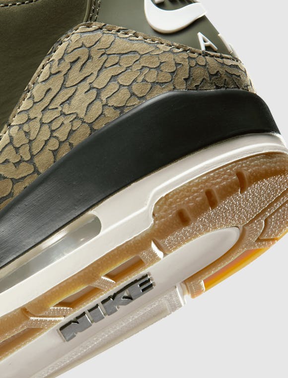Low top sneakers. Suede toe box and side panels. Leather overlays around the toe, and outer heel counter with stamped elephant print pattern. Perforated suede tongue. Embroidered logo on the tongue. Perforated suede collar. Front lacing. Foam midsole. Exposed air unit at the heel. Rubber outsole. Suede upper