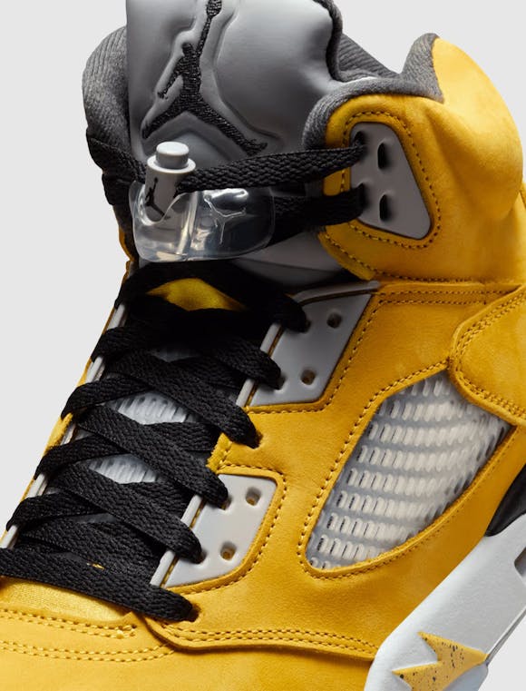 High top sneakers. Nubuck upper. Nubuck overlays around the toe, side panels, and heel counter. Nubuck toe box. Padded nubuck collar. Synthetic transparent perforated cage. Front lacing with a transparent lacelock. Reflective tongue. Embroidered logo on the tongue. Foam midsole. Exposed air unit at the heel. Rubber outsole. Nubuck upper