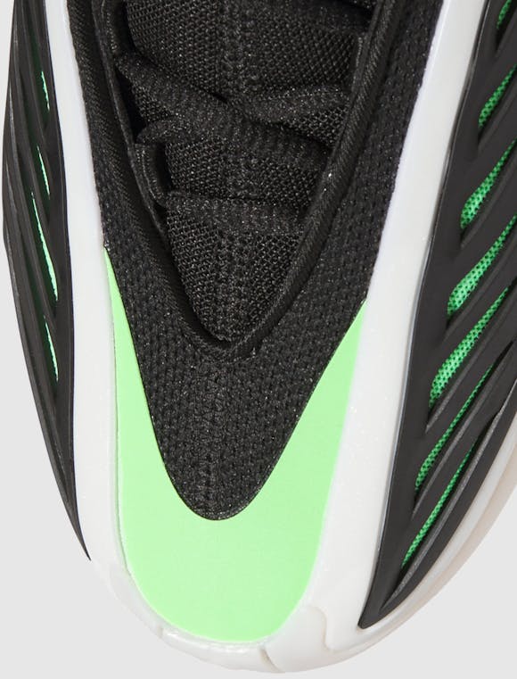 Low top sneakers. Synthetic mesh upper. Synthetic mesh padded side panels. Synthetic TPU side panel overlays. Carbon fiber protective heel overlay. Composite foam midsole with lightstrike technology and boost cushioning. Rubber outsole. Synthetic mesh upper