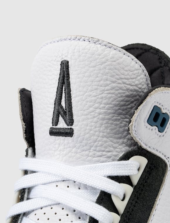 Low top sneakers. Leather upper. Suede overlays around the toe, and heel counter. Perforated suede eyelet panels, and collar. Synthetic TPU heel tab insert with an embossed logo motif at the center. Front lacing. Grained leather tongue with an embroidered logo motif at the center. Composite foam midsole with an exposed air unit at the heel. Rubber outsole. Leather, suede, and nubuck upper