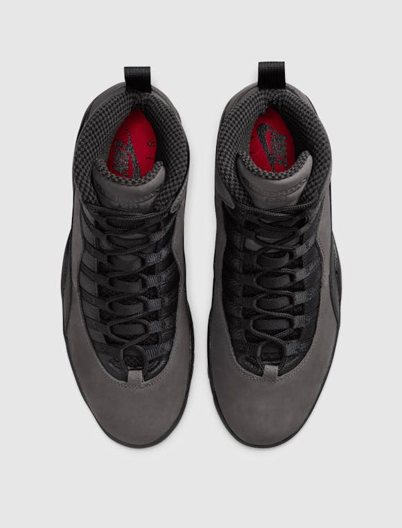 High top sneakers. Leather upper. Leather overlays around the toe, and side panels. Nylon grosgrain tape eyelets. Front lacing. Padded leather tongue. Embroidered logo on the heel counter. Composite foam midsole. Rubber outsole. Leather upper